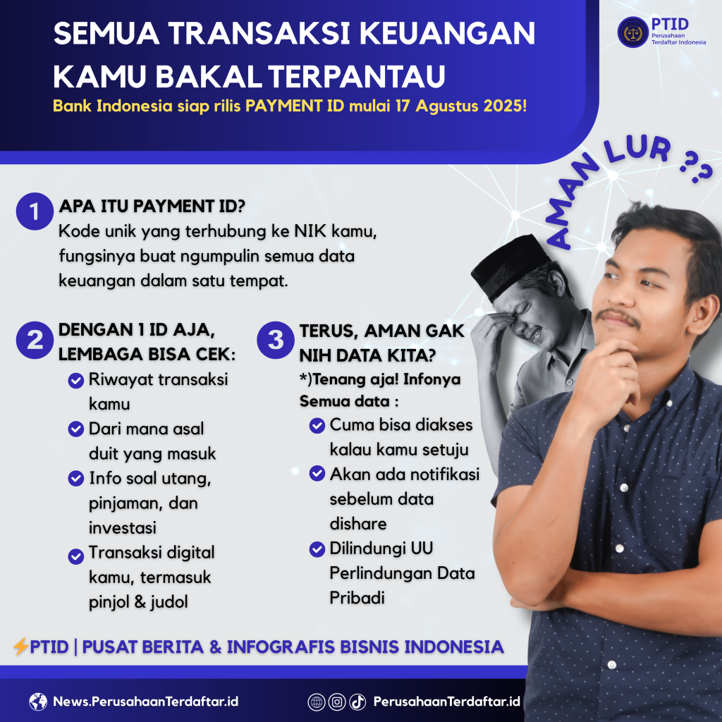 Dengan mengenalkan Payment ID, Bank Indonesia mengawali era baru dalam sistem pembayaran nasional—satu kode identitas yang menyatukan seluruh profil keuangan kamu, namun tetap menjaga privasi dengan mekanisme izin yang ketat. Artikel ini disadur dari referensi asli untuk menjaga akurasi dan menghindari plagiarisme sesuai sumber yang ditautkan. Jika kamu ingin legalitas perusahaanmu terekam dan terproteksi dengan sistem identitas finansial resmi seperti ini, PerusahaanTerdaftar.id siap membantu mendirikan badan usaha dan registrasi legal sesuai regulasi—mulai dari PT, CV, hingga pendaftaran merk—dengan proses yang cepat, aman, dan terpercaya. Jangan ragu untuk klik dan konsultasi yuk!